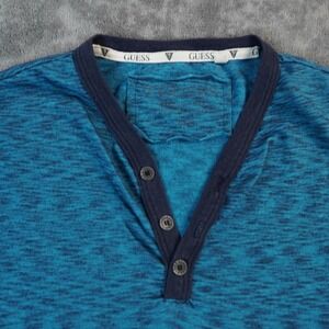 Guess Shirt Mens Small Blue Teal Short Sleeve Henley Button Abstract Psychedelic