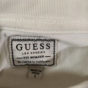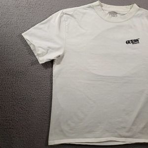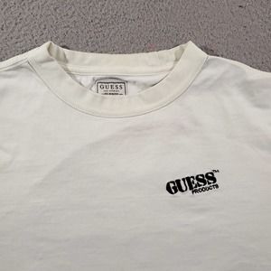Guess Shirt Mens Small White Crew Neck Embroidered Logo Graphic Print Back Hit