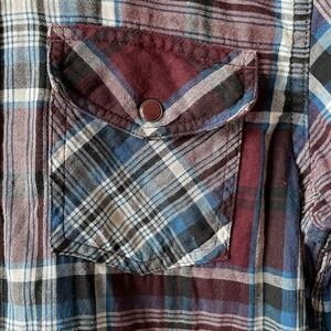 Guess Shirt Mens Small Wine & Blue Plaid Snap Front Western Long Sleeve Adult