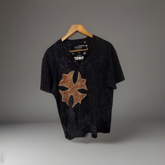 Guess Shirt Size L Black Embroidered Logo Grunge Skull Graphic Casual Designer