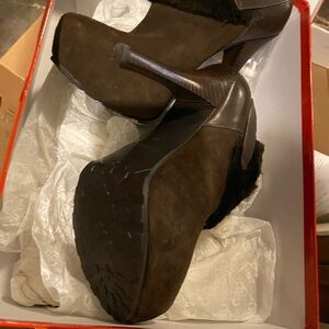 Guess Shoes Oleta Dark Brown Suede Stiletto Booties Boots