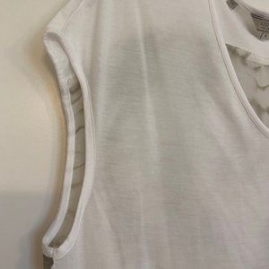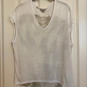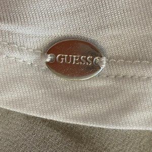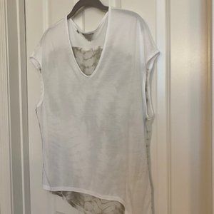 Guess Short Sleeve Blouse Mixed Fabric White Light Brown Tie- Dye Size Small