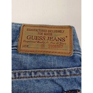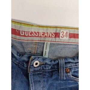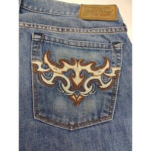 Guess Shorts Blue Denim Cut Off Women's Sz 34 Distressed Embroidery Pockets