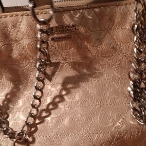 Guess Signature Beige Women Bag With Chain Handles