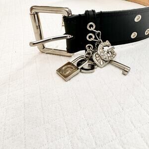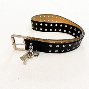 Guess Silver Charms Studded Leather Belt Black Size M NWT