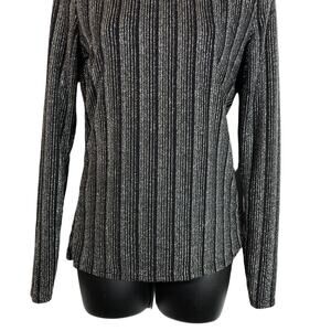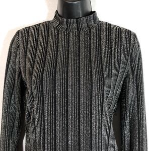 Guess Silver Striped Mockneck Top, Small Disco Metallic Shimmer Long sleeve Tshirt in Black