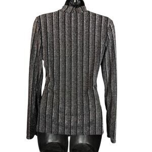 Guess Silver Striped Mockneck Top Small Disco Metallic Shimmer Long sleeve Black