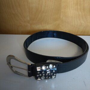 See photos for tarnish. A stylish Guess chain, perfect for adding a touch of sparkle to any outfit. This silver-tone necklace features a chain design with a rectangular logo charm at the center, embellished with black lettering. Clear rhinestones accent either side of the logo. The chain is adjustable, ensuring a comfortable and secure fit.