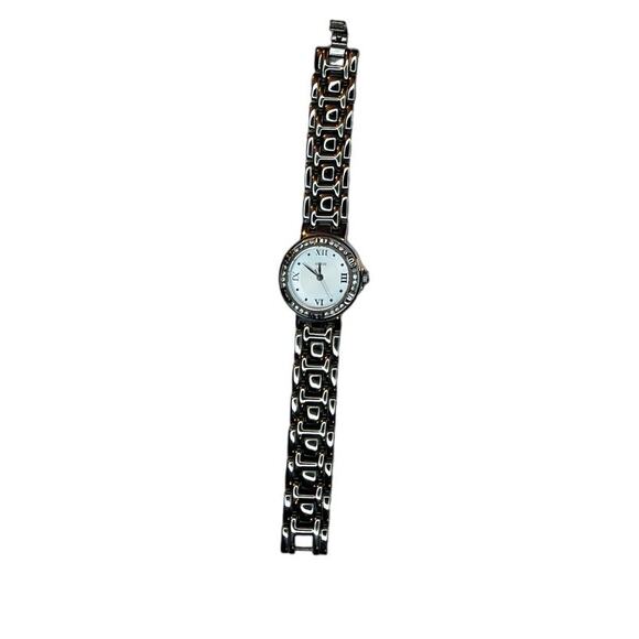 Guess watch in silver, water resistant, working as of time of photo. Approx 1" face circumference.