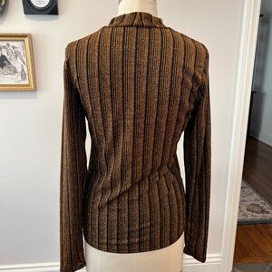 Guess Metallic Striped Long Sleeve Mock Turtleneck