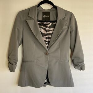 Guess Single Button Ruched Sleeve Stretch Blazer Zebra Print Satin Lined Size S