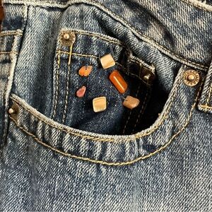 These Guess Jeans, Size 31, Ladies, Faded, Medium Wash, Straight Leg, Lightly Whiskered, Embellished with Fall Colored Glass Stones are a unique addition to your wardrobe. Pair with matching Brown Boots and a Fall Colored Sweater and you will Rock These Jeans! Think Hay Rides, Apple Bobbing, Football Games, Rockabilly, Bonfires, Y2K, Dinner and Movie Dates, Fall Festivals, and more! They are in Excellent Condition, so add these unique jeans to your closet today!