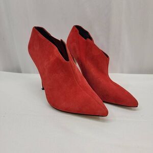 Guess Size 8.5 Ondrea Red Suede Pointed Toe Heeled Ankle Boots F