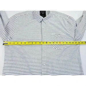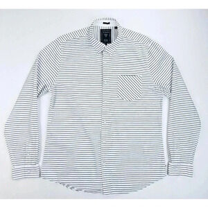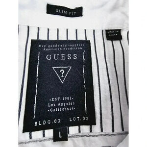 Guess Size Large Mens Slim Fit White Black Stripe Hem Logo Tag Long Sleeve Shirt