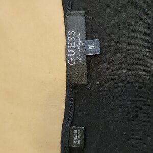 Guess Size M Black with Gray Animal Print Accent, Ruched Side Bodycon Dress. One Shoulder is Tank Style and One is Flutter Style. Sexy but not indecent. Ruching down skirt sides. Please refer to measurements in photos to ensure proper fit.