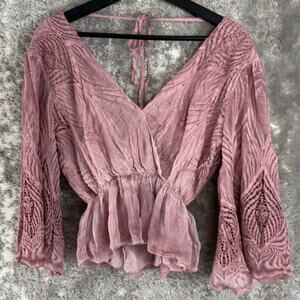 Guess Size S Babydoll Fairy Romantic Girlhood Romantic Top Pink V Neck