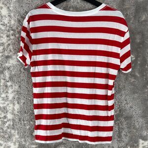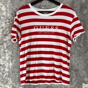 Guess Size S Spellout Striped Casual T Shirt Red White Short Sleeve Pullover
