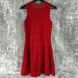 Guess Size S Zigzag Lace Floral Party Wear Mini Dress Red Sleeveless Lined