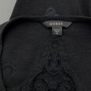 Guess Sleeveless Black Knit Bodycon Mini Dress Mesh Insert BacK Floral Cutout XS