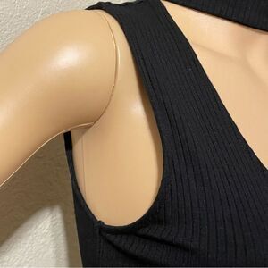 Guess Sleeveless Choker Ribbed Top 1/2 Zipper Front Black Size Medium