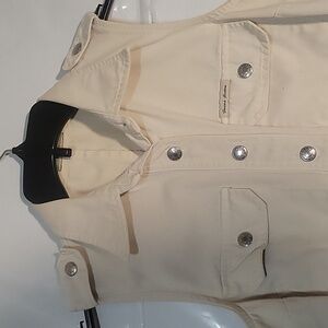 Guess Sleeveless Mini Dress Button Down Shirt Dress Tan S retro designer beach