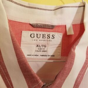 Guess Slim Fit Striped Button Up Dress Shirt Work Career Size XL