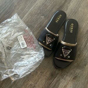 Guess Slip On Magnify Faux-Leather Beach Slides Black Women's Size US 6M