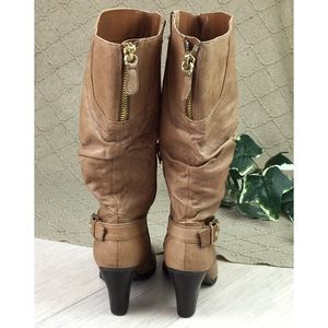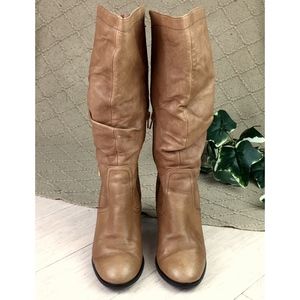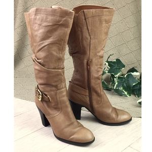 Guess Slouchy Leather Boots Heels 6 Wide Calf