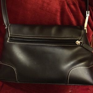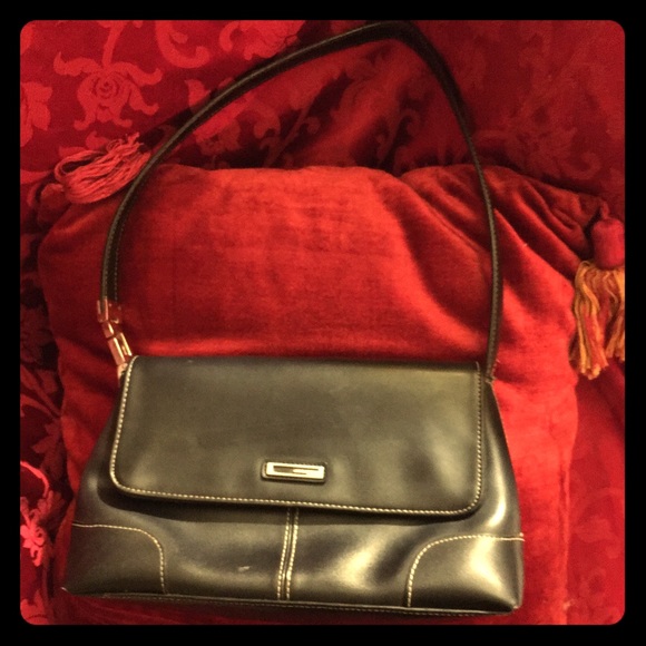 Guess Small Black Handbag, gently used, small flaw on the front is reflected in the price. Good condition!