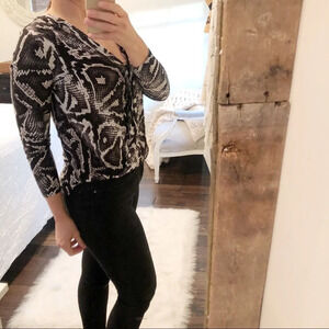 Guess Small Sexy snakeskin plunge knotted front blouse