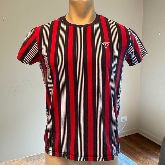 Guess Small Tshirt Stripes Navy/red/white Brand logo embroidered on upper chest light ware.
