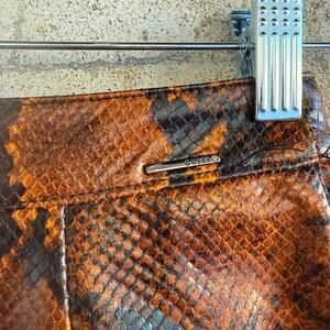 Guess Snake Print Mini Skirt Faux Leather O Ring Zip Brown Black XS Rock & Roll