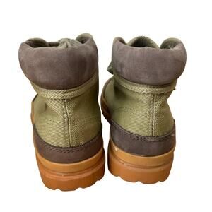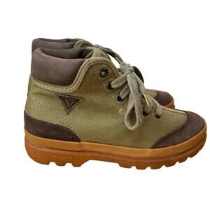 Vintage 90’s Guess Sneaker Boots are size 5.5, two-tone brown and crafted from durable canvas and rubber. These lace-up boots showcase a unique blend of retro and sporty styles, making them a must-have for women who love to stand out.