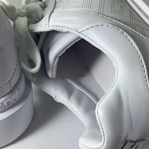leather, brand logo, solid color, leather backing, laces, round toeline, flat, rubber cleated sole, contains non-textile parts of animal origin, low-tops & trainers
