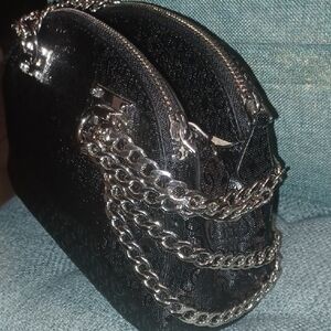 Guess Special EDITION Black Monogram Bag with Silver Chain