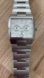 Description: Rare watch. Beautiful square stainless steel chronograph-style dial with day and dad dials. Stainless and luminous hands and markers. Stainless case. Just cleaned and serviced with a new battery installed. Works well!