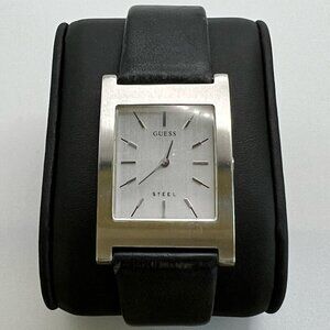 Guess Steel Ladies Watch Silver White Black Leather Strap Working