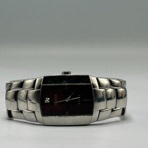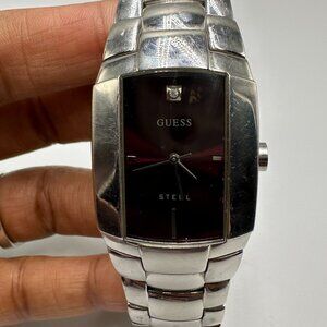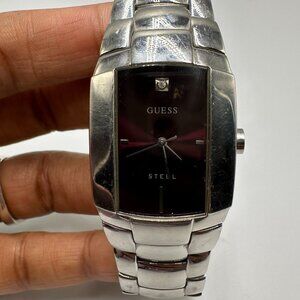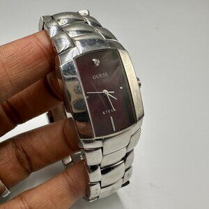 Guess Steel Watch Men Maroon Dial Barrel Case Water Resistant New Battery 7.25"
