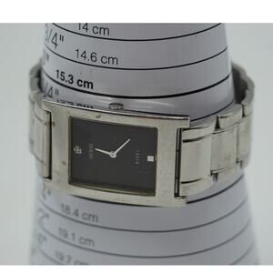 Guess Steel Watch Unisex 26mm Silver Tone Tank Black Dial with New Battery