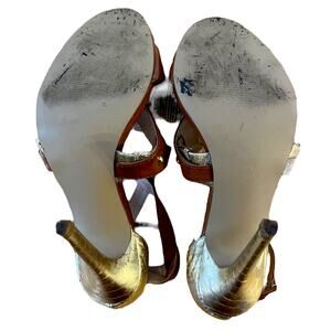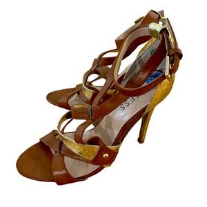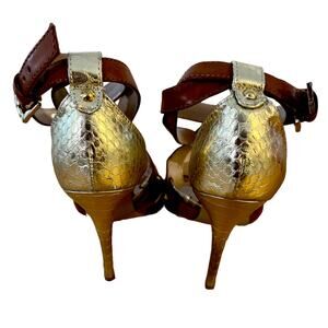 Guess Stiletto Womens Brown and Gold Snakeskin Heels Ankle Strap Size 6.5