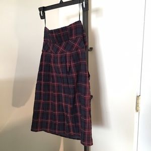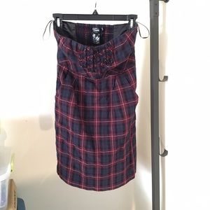 ▪️Guess•Los Angeles▪️Beautiful strapless dress. Empire waistline, pockets!! Fully lined with black Polester/spandex fabric, cotton plaid fabric. zipper on left under arm. Silicone rubber strip across the top of the bust to keep from slipping- Navy/white/maroon/black plaid