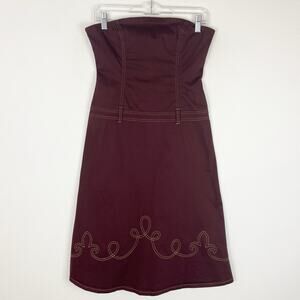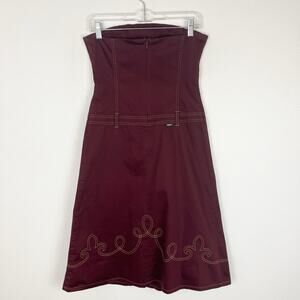 Guess Strapless Dress Country Western Boho Cotton Spandex Burgundy Large