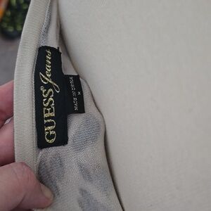 Step into the spotlight with this Guess bodycon dress, designed for a night out with its elegant ruched detailing. The strapless neckline and sleeveless design create a sleek silhouette, while the rich brown and tan hues add a touch of sophistication. Perfect for cocktail occasions, this dress promises to make a lasting impression.size Medium Measurements are in the photos