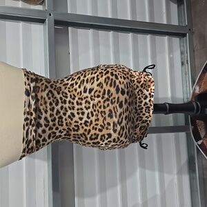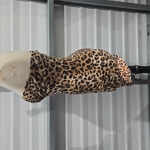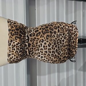 Guess Strapless Ruched Bodycon Dress in Brown and Tan Leopard Print Size Mediun