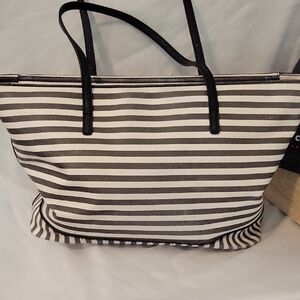 Stylish Guess women's bag featuring a chic black and gray striped design. Perfect for any occasion.