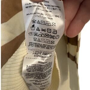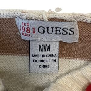 Guess Striped Ribbed Hooded Full Zip Sweater Slim Fit White Brown Size Medium