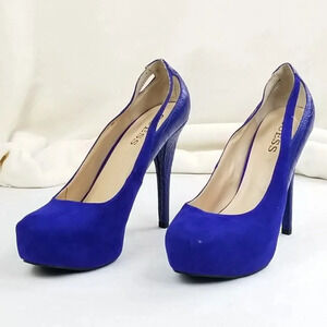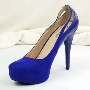 Guess Suede Animal Print Combo Stiletto Blue Shoes