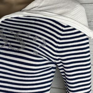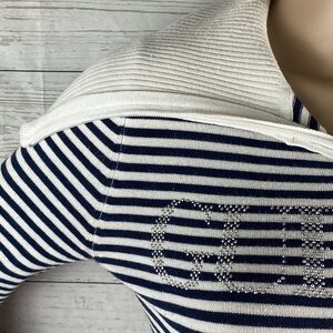 Guess Sweater Jacket Juniors Medium Black White Striped Rhinestone Logo Full Zip