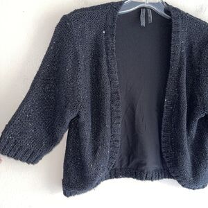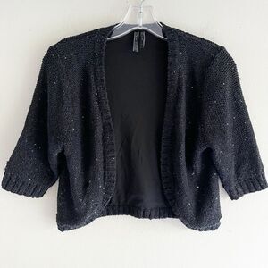 Guess Sweater Shrug Size S Knit Sequined Half Sleeves Black Open Front