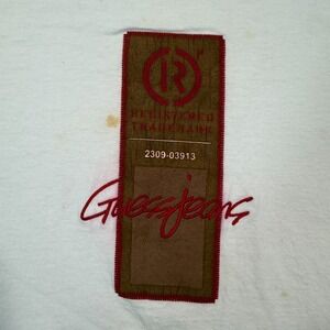 Guess T-Shirt Men Large White Short Sleeve Cotton Crew Neck Basic Logo 90s